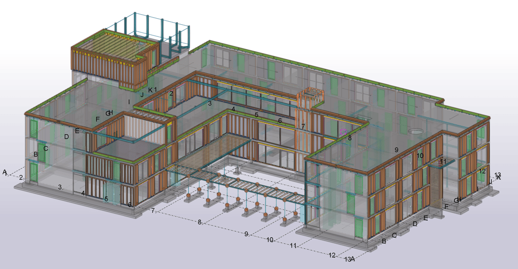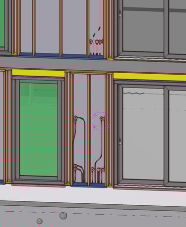De elementen zijn in de fabriek al voorzien van elektra. Hiervoor konden we het IFC-model van de installateur 1-op-1 overnemen in ons model en eenvoudig toevoegen aan de productietekeningen.