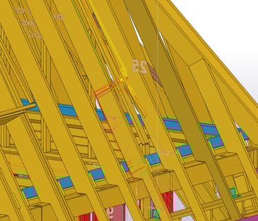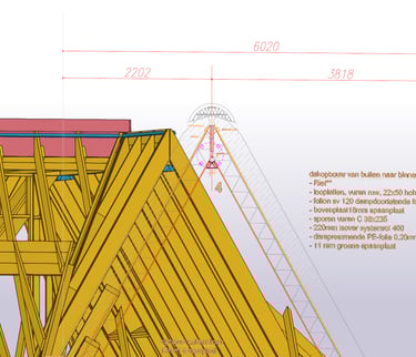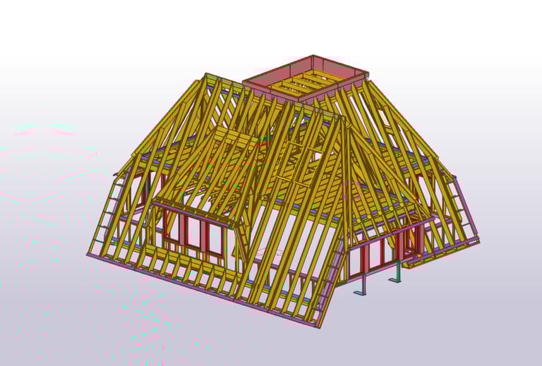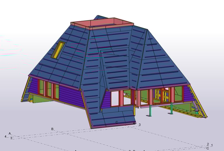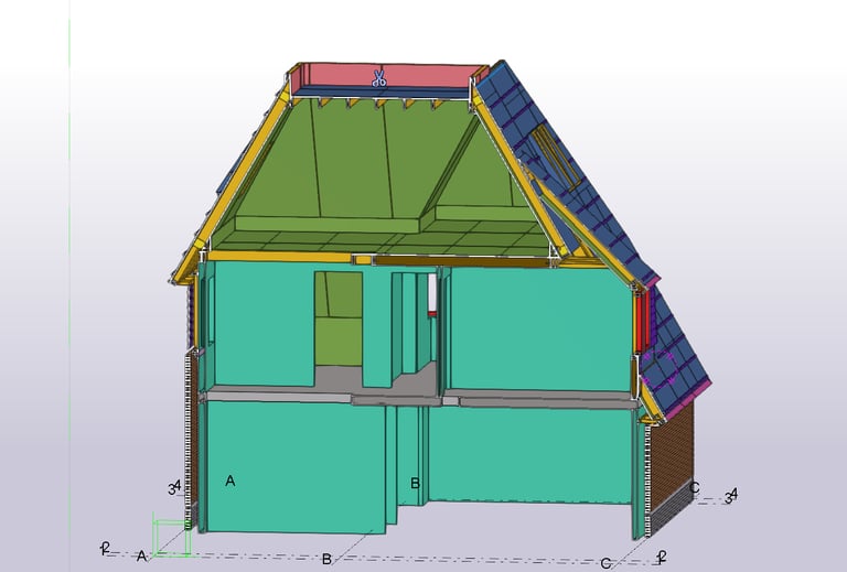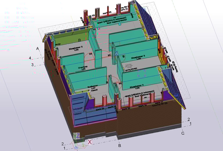 Voor dit project heb ik de HSB-elementen volledig geëngineerd en productiegereed gemaakt. Dit omvatte onder andere de kapelementen, dakkapellen, zoldervloer en HSB-gevelelementen.